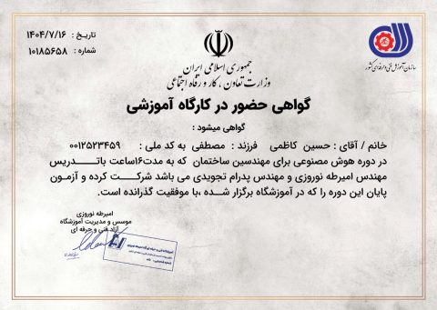 نمونه مدرک پایان دوره هوش مصنوعی: