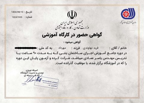 آموزش اجرای ساختمان بتنی کاملاً کارگاهی با فیلمهای ضبطشده در پروژه واقعی.